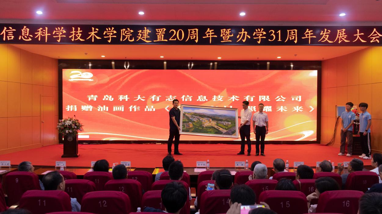 青岛科大有志信息技术有限公司CEO刘健、董事长助理李英铭向学院捐赠《璀璨夺目 照耀未来》油画作品,希望做爱直播