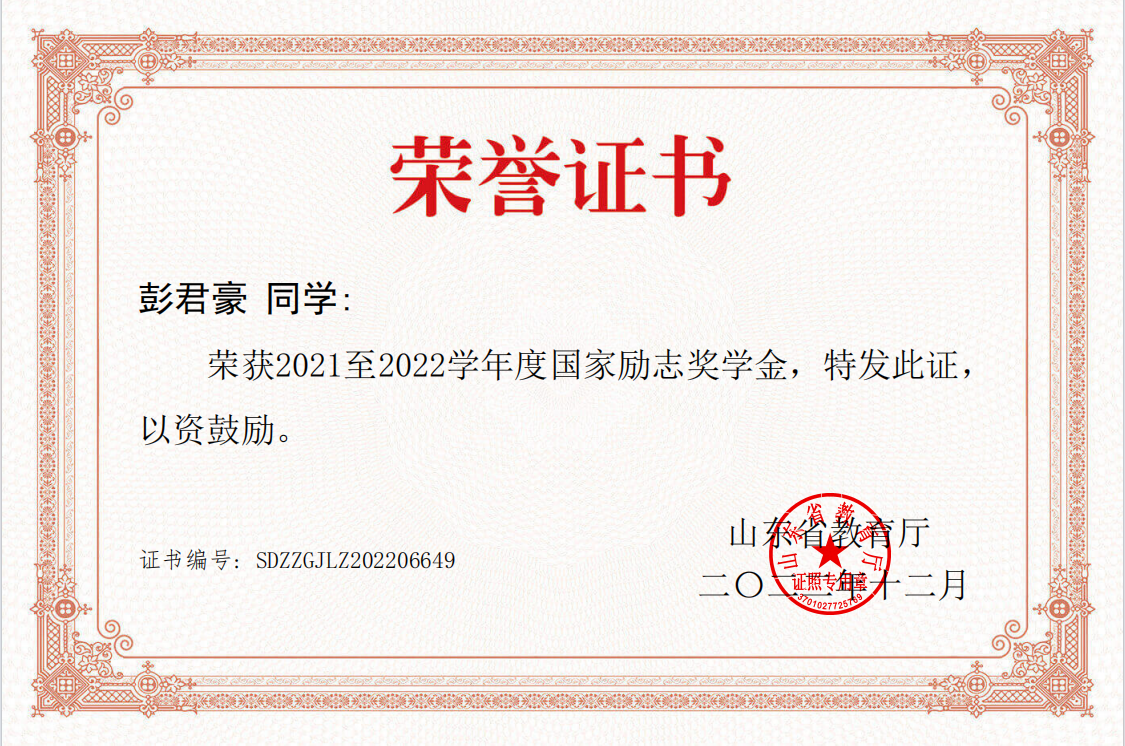 国家励志奖学金;