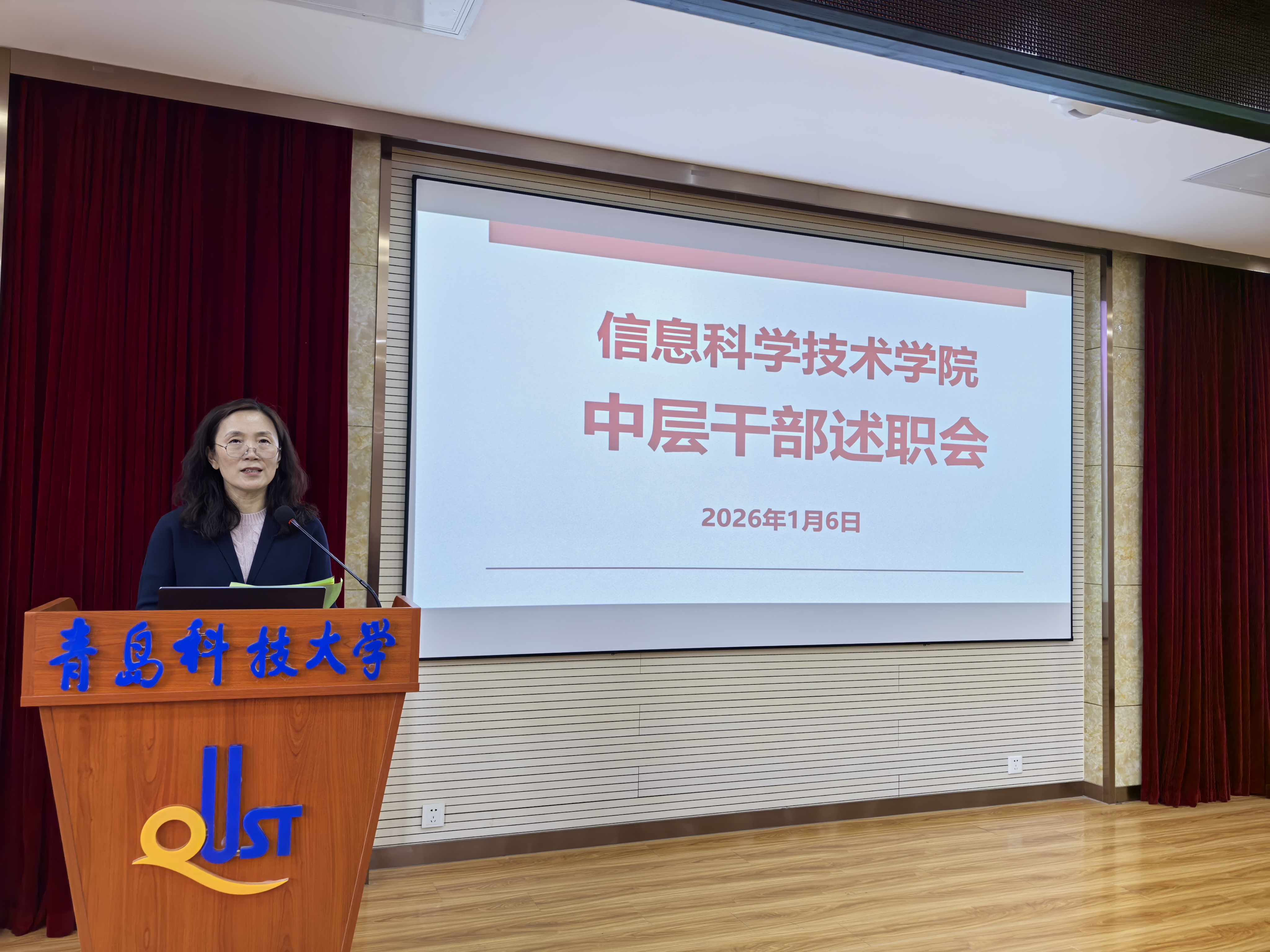 院长王景景代表学院行政进行述职,她指出,全院上下团结奋进,开拓进取,扎实工作,学院高质量发展取得实质性进展,在学科建设、学位点申报、教育教学、科学研究、教师队伍、社会服务、社会影响等方面取得了显著成绩。她还深刻分析了当前学院发展面临的机遇与挑战,并对2026年的重点工作进行了初步规划和部署,为学院新一年的发展指明了方向。学院其他领导围绕各自分管领域的工作,从履职情况、工作成效、存在问题及改进思路等方面进行了全面、客观的汇报。